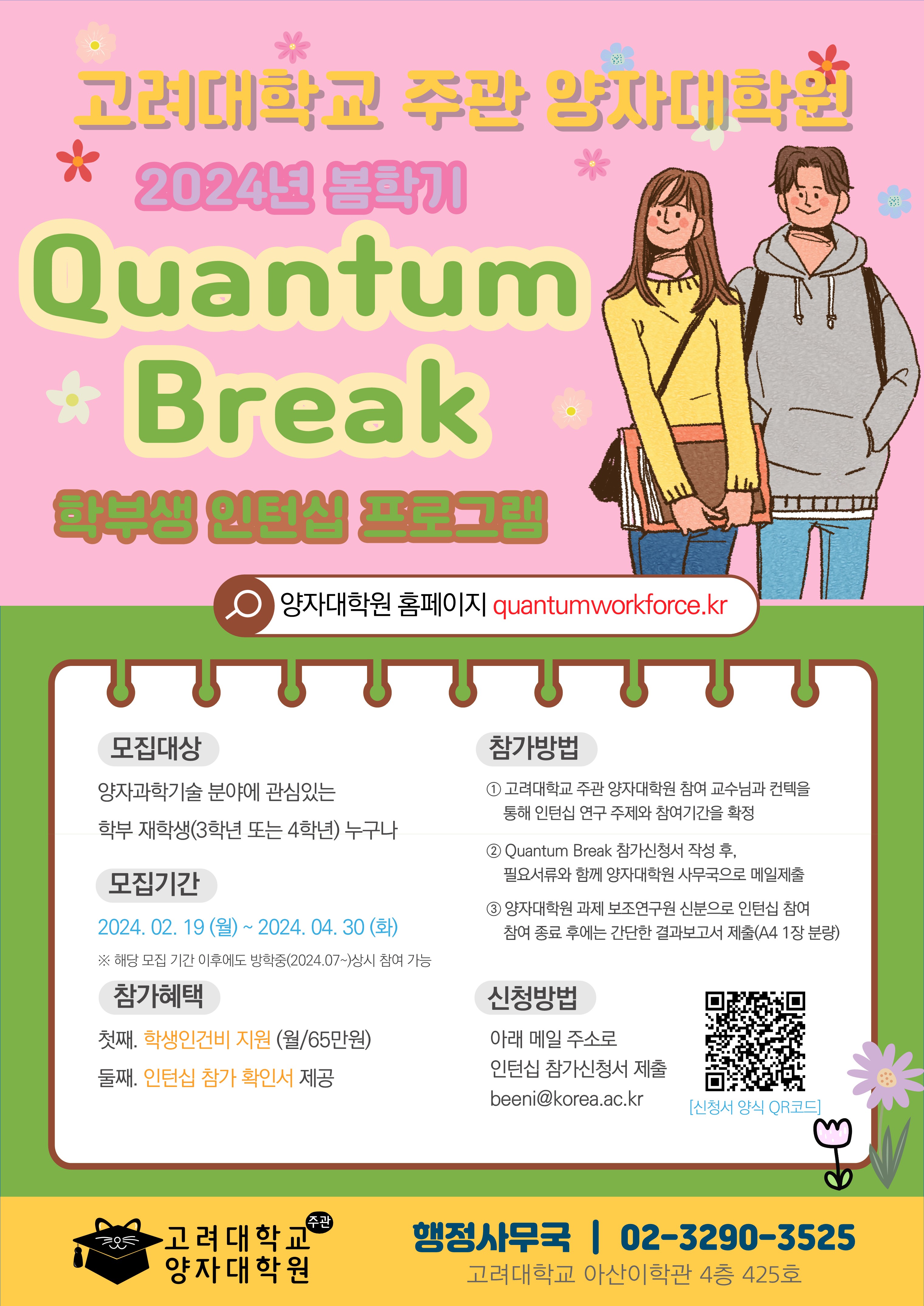 양자대학원 2024년 봄학기 Quantum Break 학부생 인턴십 프로그램 상세