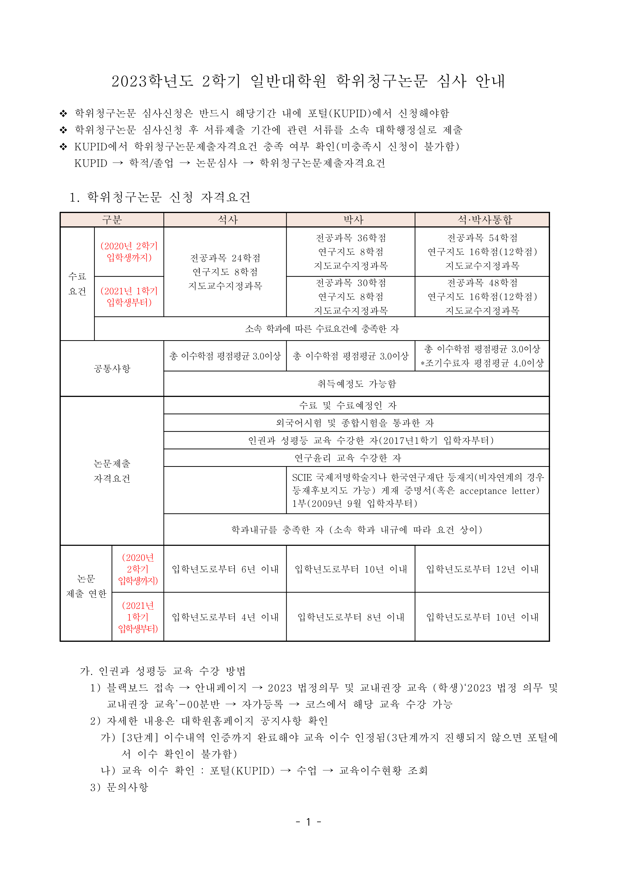 | 제목 | 2023학년도 2학기 일반대학원 학위청구논문 심사 안내 |