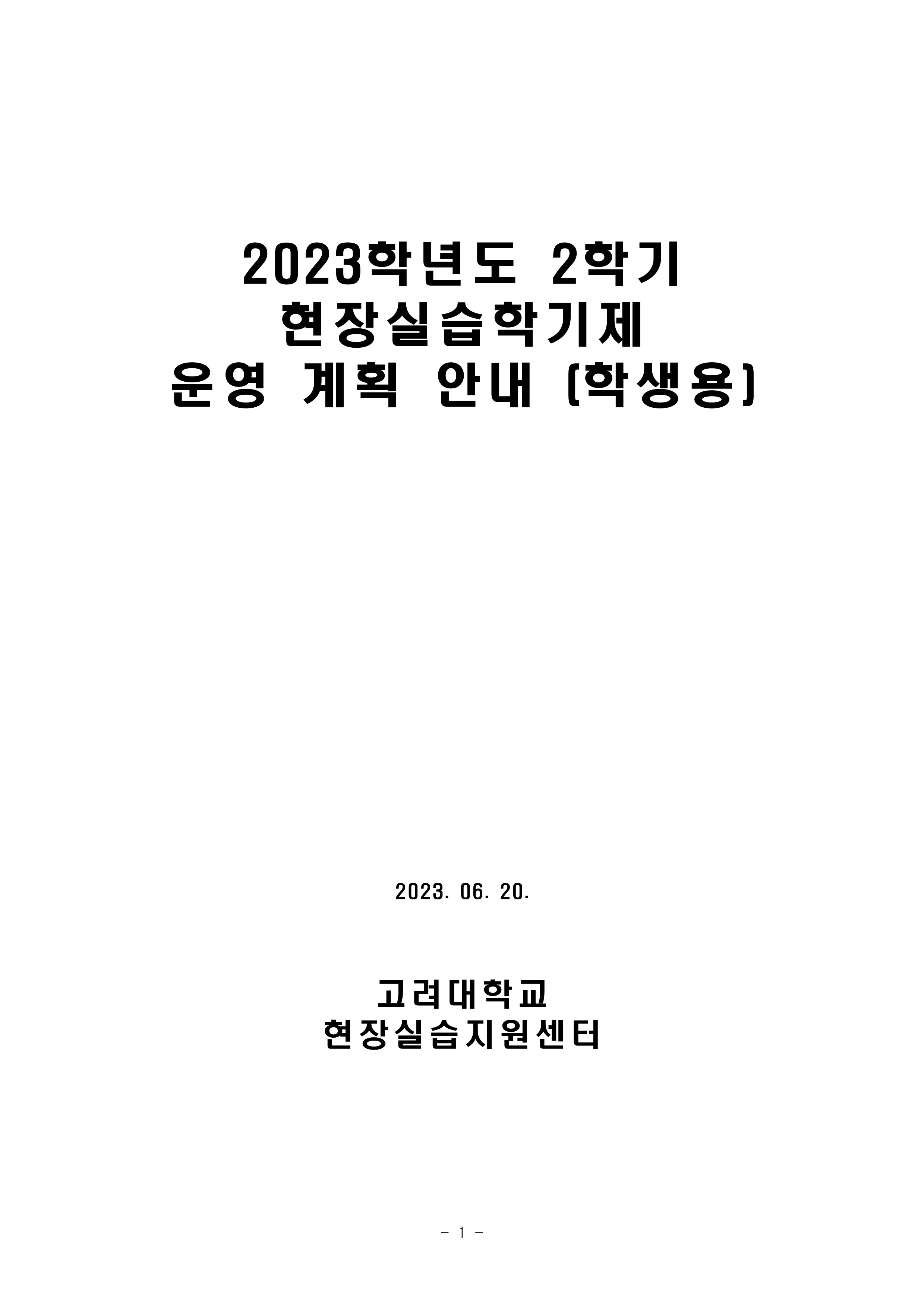 제목 2023학년도 2학기 현장실습학기제 운영 계획 안내