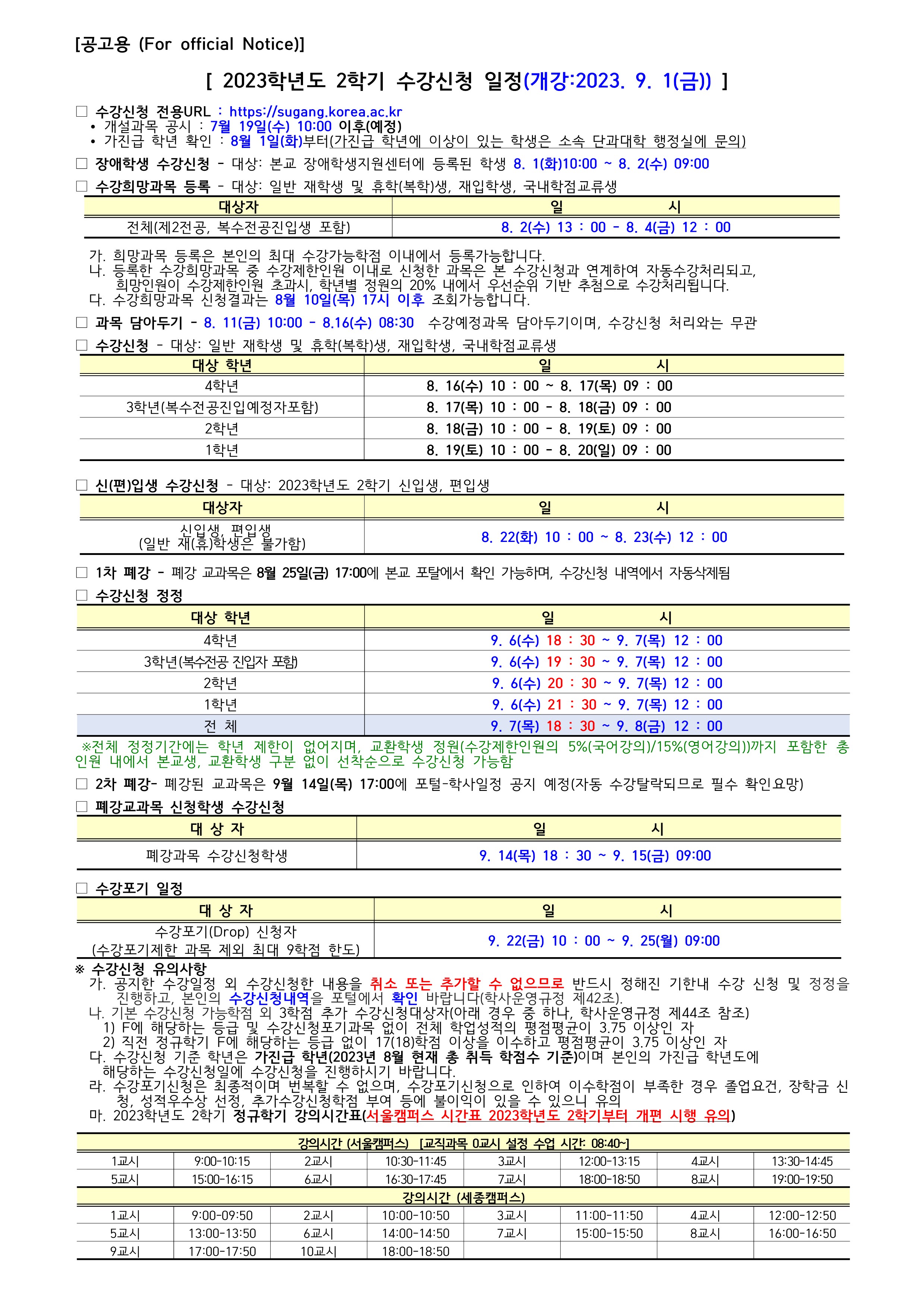 | 제목 | [학부] 2023학년도 2학기 수강신청 안내 |