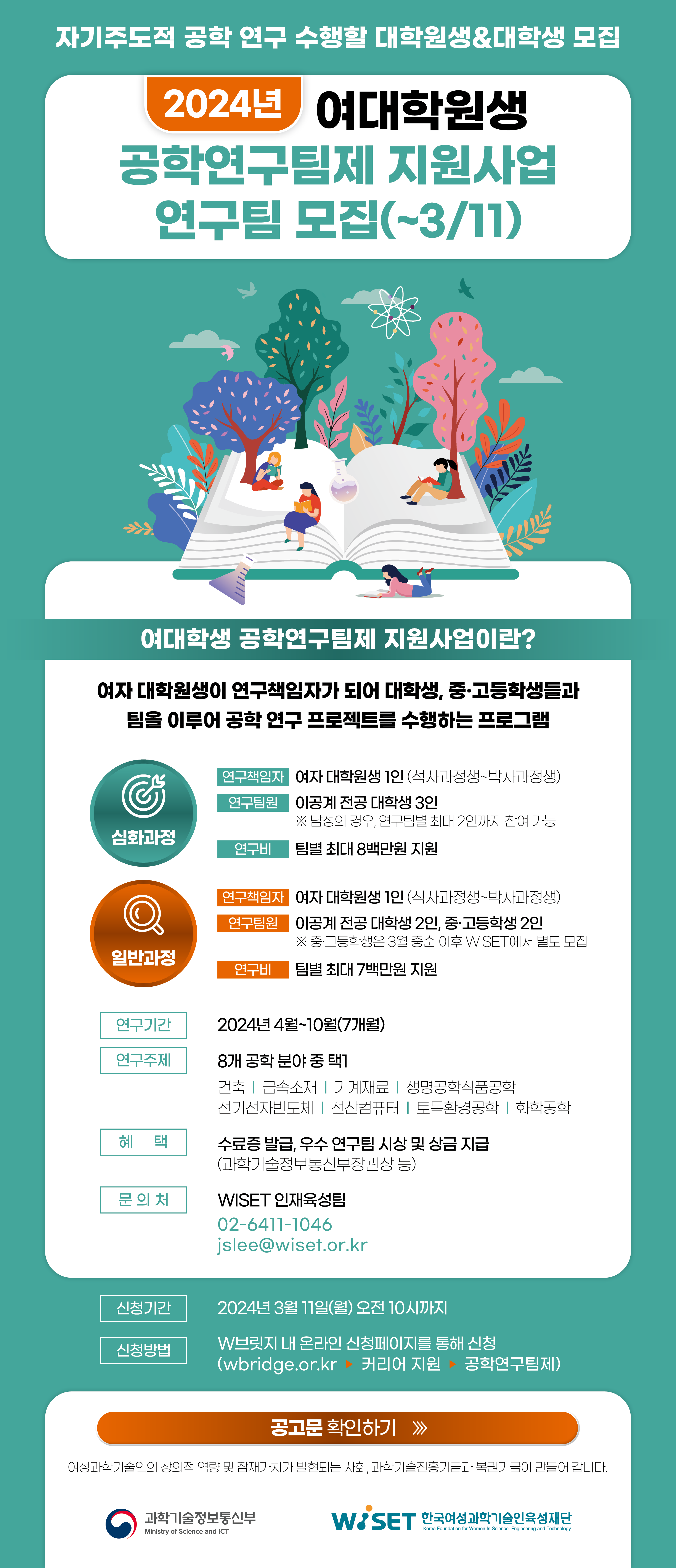 | 제목 | WISET 2024년 여대학원생 공학연구팀제 지원사업 |