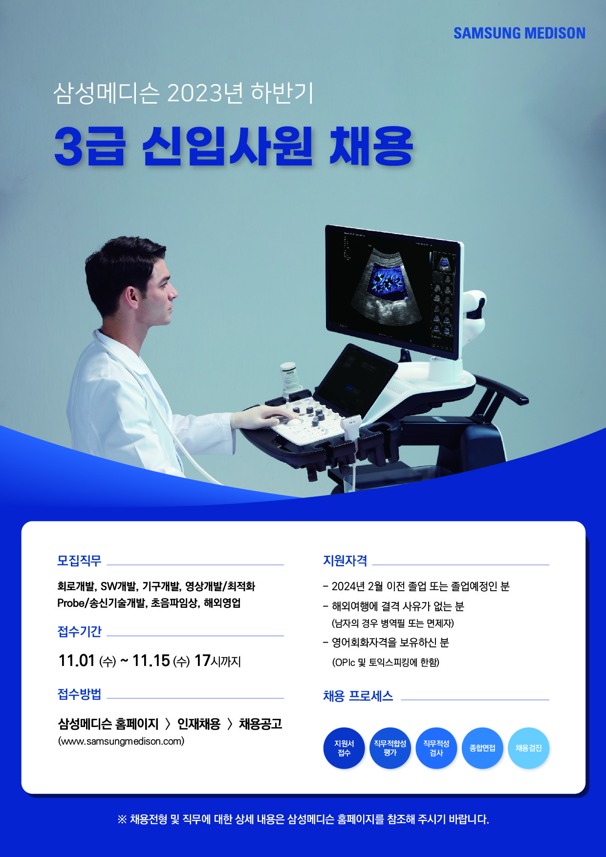[삼성메디슨] 2023년 하반기 3급 신입사원 채용 (11/1~11/15) 상세