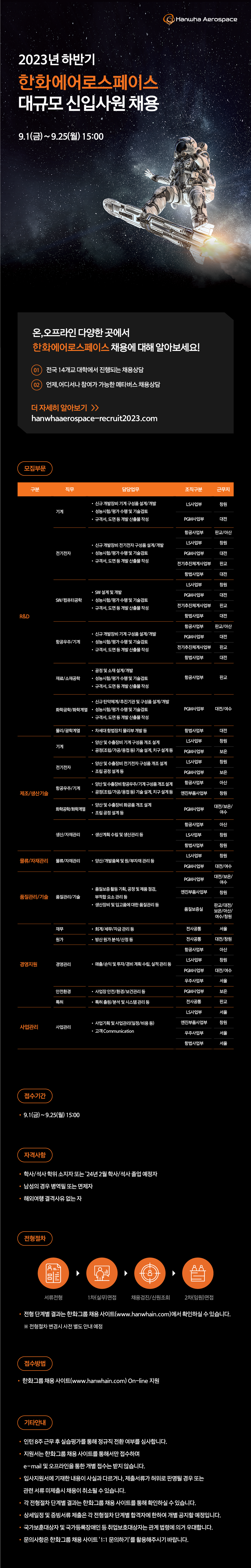 제목 [한화에어로스페이스] 2023년 하반기 대규모 신입사원 채용