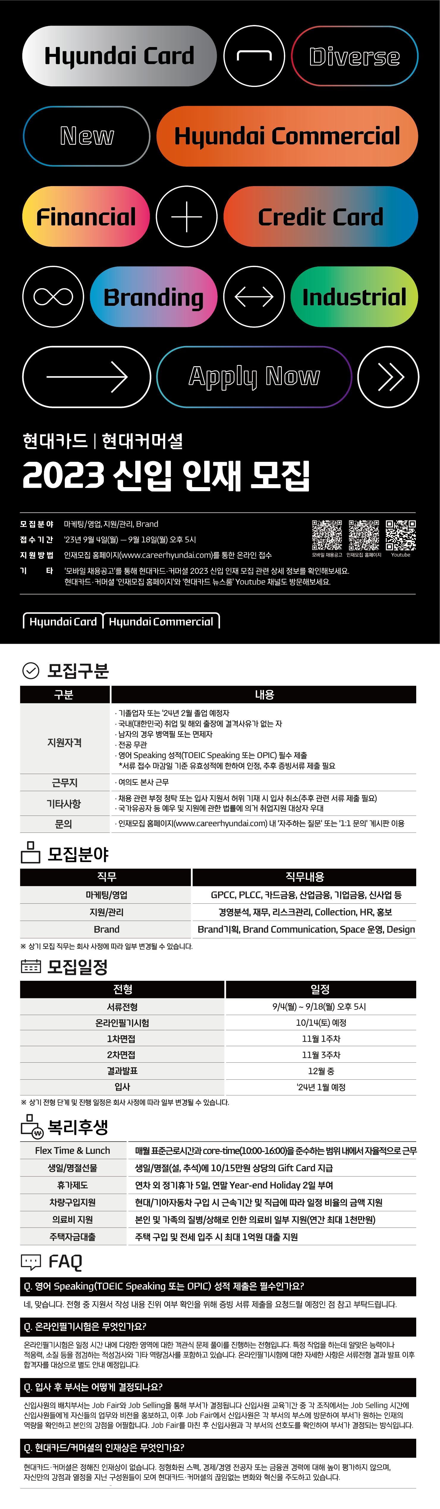 [현대카드/현대커머셜] 2023 신입 인재 모집 (~9/18) 상세