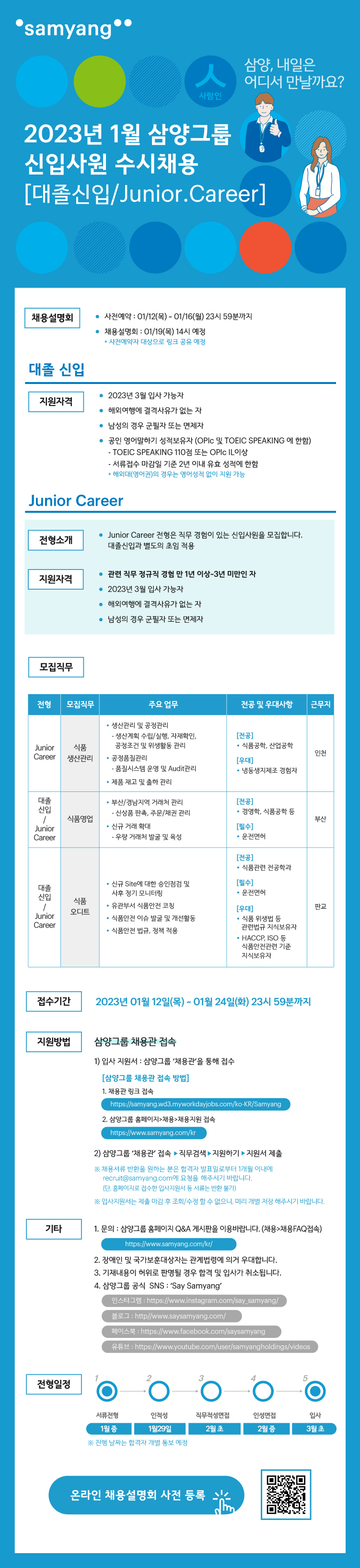 [삼양그룹] 2023년 1월 삼양그룹 신입사원 수시채용(~1/24(화))
